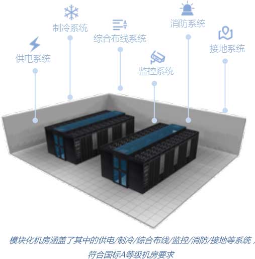 模块化机房是一套完整的机房解决方案。它由不同的功能部件组成一个完整的机房模块,集机架、配电、制冷、监控、管理与维护、安全等系统于一体,实现