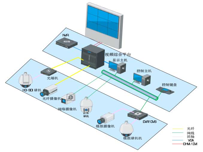 以高清视频综合平台为核心控制单元,可轻松实现多种信号接入并输出至LCD或DLP大屏幕进行高清显示
