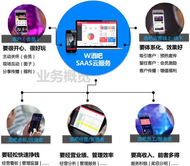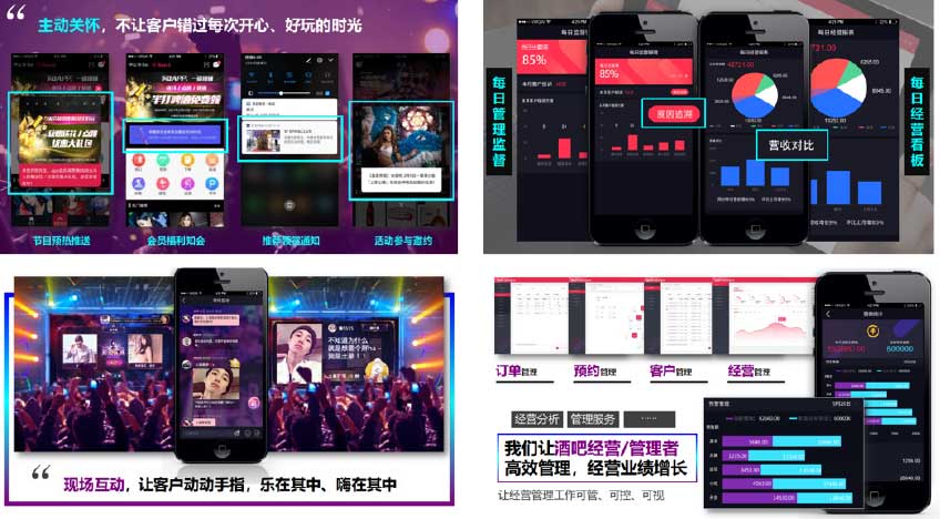 梦约智能酒吧平台是借助最前沿的IT技术/互联网技术/移动互联网/物联网技术等,融合酒吧业务,着力打造以“健康、休闲、愉悦、有趣、交友”为主题的 新型酒吧生态体系的平台。平台实现服务员线上管理/线上抢单、客户APP下单/存酒/支付等智能管理手段,有效地节约酒吧业主的人力成本,提高管理效率。